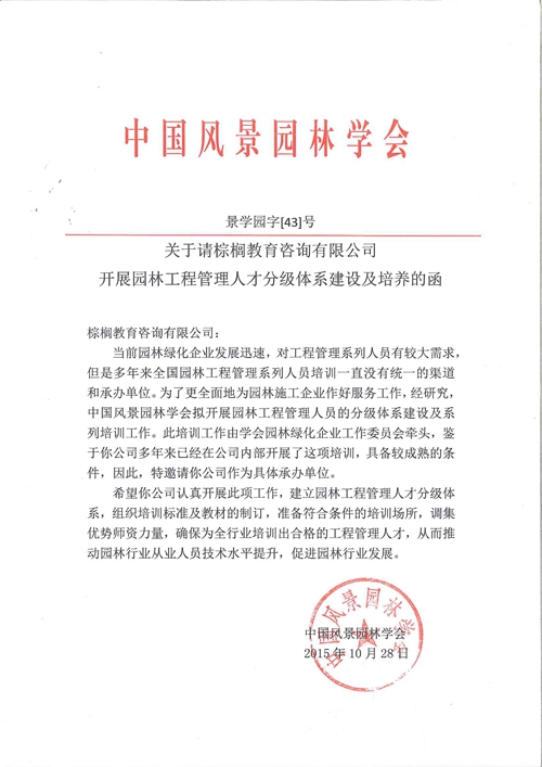2015年10月,棕榈教育被行业权威机构——中国风景园林学会指定为“园林行业人才分级培养标准和培养体系建设单位”。这也将成为棕榈教育立足园林职业教育圈的另一重要优势。