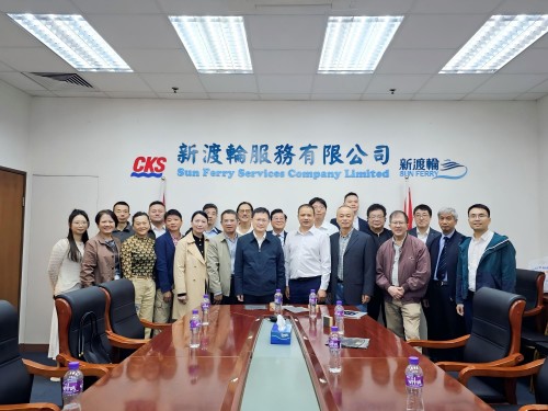 当日下午,在HKIMT主席陈伟强先生和HKJB主席李耀杰先生等香港学会同仁的陪同下,学会代表团一行到访新渡轮服务有限公司,受到该公司的热烈欢迎并进行了深入的座谈交流。座谈会上,新渡轮向代表团详细介绍了其整体运营情况及和核心业务板块,并重点介绍了公司旗下的“新明珠”系列客船。该系列客船作为中国香港新渡轮离岛项目新一代的高速客渡船,展现了多元化的技术路径和先进的建造工艺,具体船型涵盖了碳纤维复合材料船、铝合金船以及混电、纯电、柴电等多种动力类型的环保节能船舶。特别值得一提的是,代表团的成员单位中的英辉南方造船(广州番禺)有限公司和广东中威复合材料有限公司,正是“新明珠”系列客船的重要建造单位,这一深度合作背景为本次交流增添了更为务实的内容。