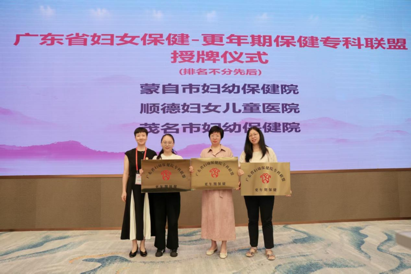 9月27日,大会举行广东省妇女保健更年期专科联盟新增单位授牌仪式,进一步拓展了区域更年期保健服务的覆盖范围。仪式由联盟秘书、省妇幼保健院更年期保健专科主任吕霄主持,联盟盟主、学会更年期健康分会主任委员夏建红教授发表致辞。自专科联盟成立以来,通过技术帮扶、人才培养、资源共享,显著提升了基层更年期保健服务能力。此次新增蒙自市妇幼保健院、顺德妇女儿童医院、茂名市妇幼保健院三家成员单位,将进一步优化“核心引领、区域联动”的服务格局,推动优质医疗资源下沉基层,助力更多更年期女性获得规范、精准的健康管理服务。