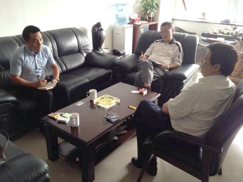 陈定刚秘书长与林雄总经理、王庆导演深入交谈