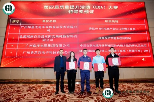 大会闭幕式上同步举行了第四届质量提升活动(EQA)大赛颁证典礼,赛事共评选出特等奖4项、一等奖8项、二等奖20项、三等奖18项,中兴通讯股份有限公司、广州南洋电缆集团有限公司、广州勇艺邦电子科技有限公司等7家企业获得优秀组织奖。通过大赛平台,各参赛团队不仅展示了自身质量建设成果,更汲取了同行的先进经验,这将成为企业持续深化质量改进的强大动力。
