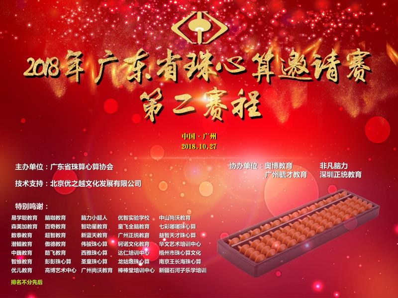 2018年10月27日广东省珠心算邀请赛第二赛程比赛在广州颐和山庄隆重举行。
